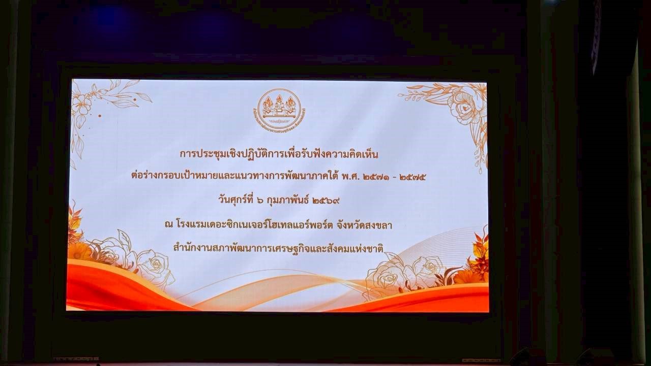 ประชุมเชิงปฏิบัติการรับฟังความคิดเห็นร่างกรอบเป้าหมายพัฒนาภาคใต้ พ.ศ. 2571–2575