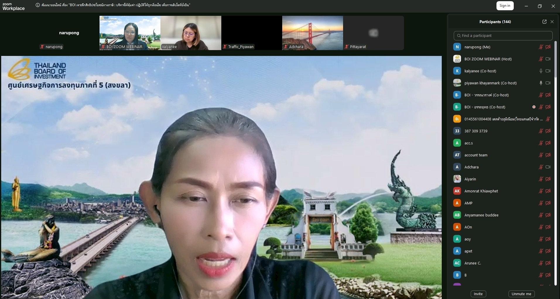 เมื่อวันที่ 2 เม.ย. 2569 นางสาวปิยะวรรณ ขยันมาก ผู้อำนวยการศูนย์เศรษฐกิจการลงทุนภาคที่ 5 (บีโอไอ สงขลา) เป็นประธานกล่าวต้อนรับและเปิดงานสัมมนาออนไลน์ เรื่อง "BOI เจาะลึกสิทธิประโยชน์ทางภาษี : บริหารให้คุ้มค่า ปฏิบัติให้ถูกเงื่อนไข เพื่อการเติบโตที่ยั่งยืน" ผ่านโปรแกรม Zoom วิทยากรบรรยายครั้งนี้ได้รับเกียรติจาก นางสาวกัญญาณี ปุสเดโว นักวิชาการส่งเสริมการลงทุน ระดับชำนาญการ กองติดตามและประเมินผลการลงทุน 1